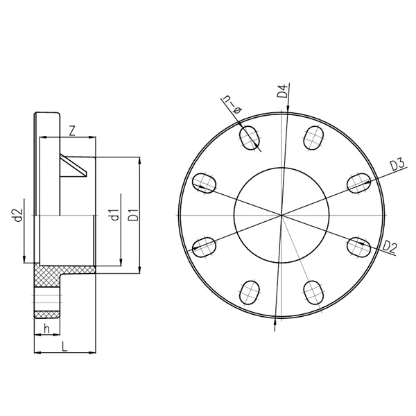 DN D1 D2 D3 D4 d1 d2 L h Z n-Ø